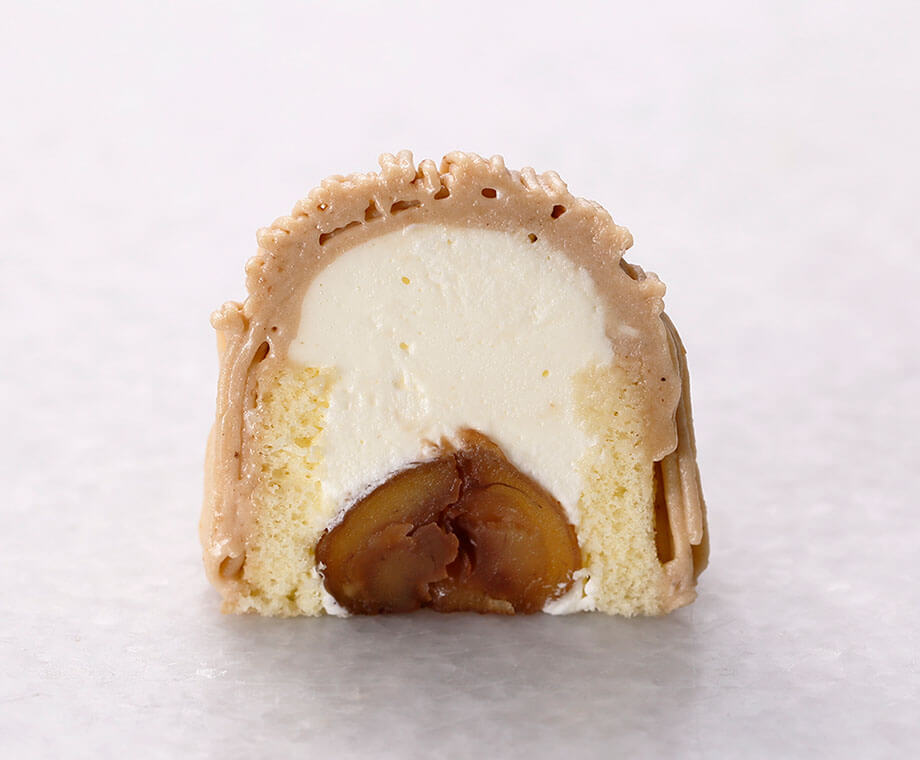 コクのある生クリーム、風味豊かな蒸し栗、芳醇な香りのマロンペーストを、ラム酒香る口溶けのよいマロン(モンブラン)クリームで包みました。