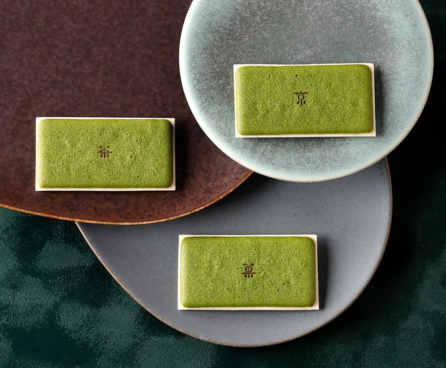 一の重には定番のお濃茶ラングドシャ「茶の菓」、二の重にはお濃茶フォンダンショコラ「生茶の菓」を重ねて。
