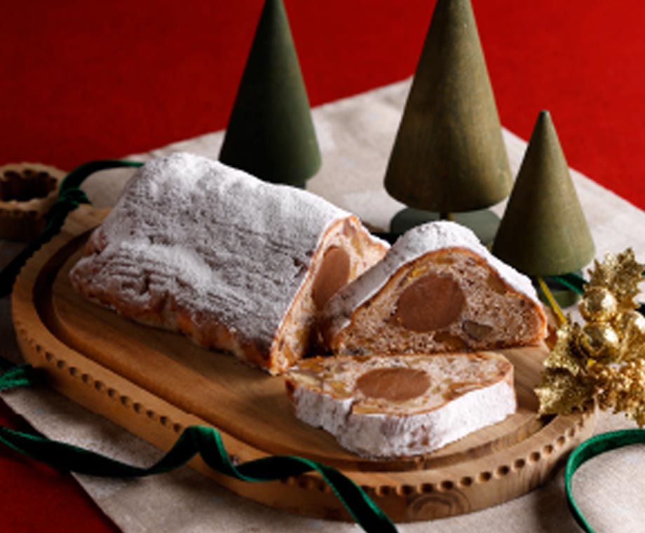 マールブランシュのスペシャリテ「モンブラン」を、クリスマスの定番シュトーレンに仕立てました。芳醇なラム酒の香りに、栗やくるみ、モンブランクリームをたっぷりと重ね合わせた豊かな味わい。ひと切れごとに広がるマロンの風味とともに、クリスマスまでのひとときをゆっくりとお楽しみください。