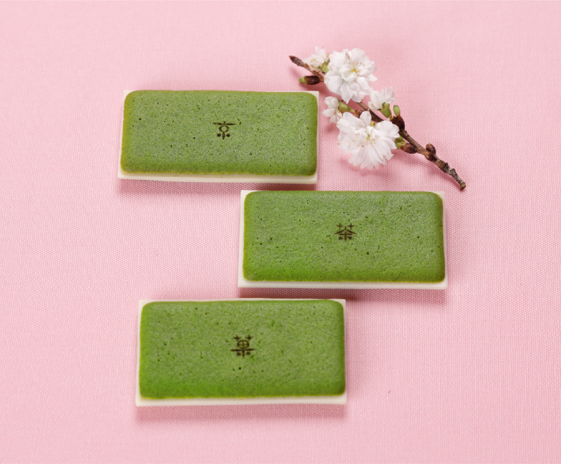 京 宇治 白川の厳選茶葉をはじめとする宇治茶を使用。京スイーツの定番から世界品質へ。こだわりの茶葉を丁寧に見極め、もっともふさわしい色・味・香りのお濃茶に調合。シェフの技と五感で、口どけのよいラングドシャに焼き上げ、ミルク感豊かなオリジナルホワイトチョコレートを挟みました。春限定パッケージで登場。