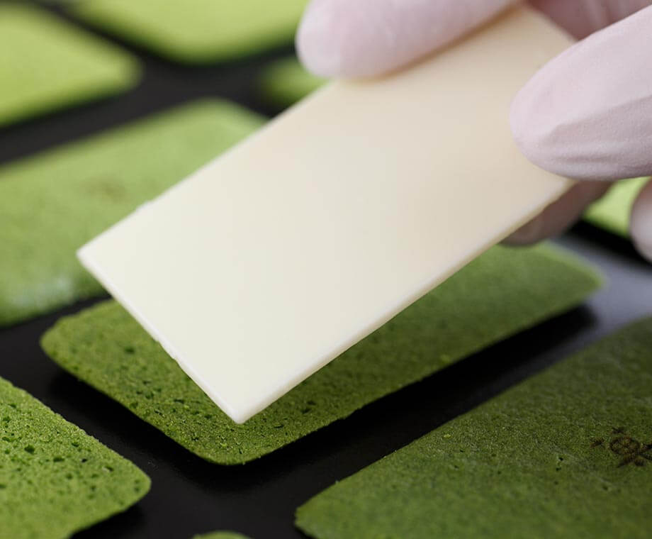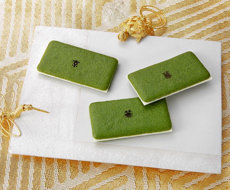 厳選したお濃茶を使ったお濃茶ラングドシャで、特製ホワイトチョコレートを挟んだ、京スイーツの定番です。