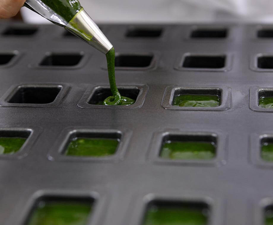 京 宇治 白川をはじめとする厳選お濃茶をたっぷり使い、ゆっくりと火入れをしたお濃茶フォンダンショコラ「生茶の菓」。風味も食感も、すべてに「生」の味わいを追求して、しっとりなめらかに仕上げました。