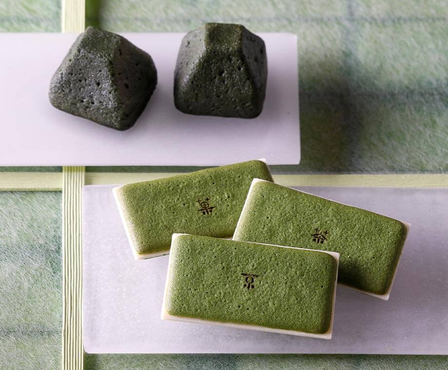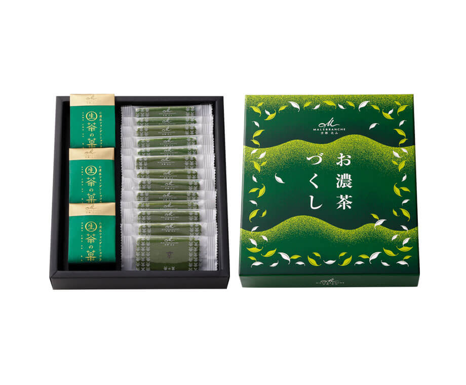 愛され続けるマールブランシュの顔、お濃茶ラングドシャ「茶の菓」と、冷やしてお召し上がりいただくお濃茶フォンダンショコラ「生茶の菓」が揃ったお詰め合わせです。