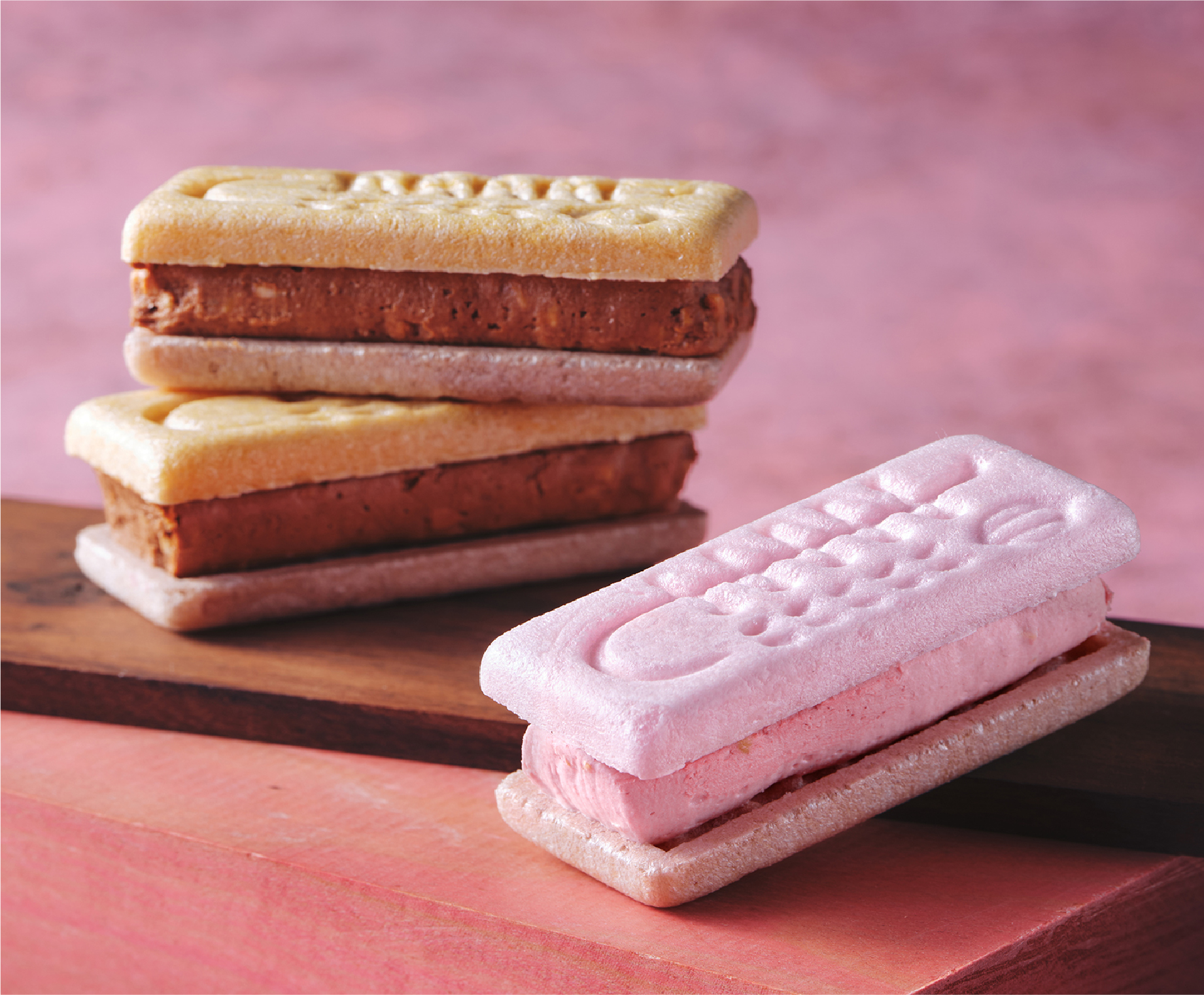 春限定の苺味と、定番人気のジャンドゥーヤのセット。どちらも特別に焼き上げたオリジナルもなかでクリームをサンドしています。苺味には、苺チョコレートとホワイトチョコレートが調和したクリームを。定番のジャンドゥーヤには、アーモンドとヘーゼルナッツにミルクチョコレートを合わせた豊かな味わいのクリームをサンド。どちらも、なめらかな口どけと香り高い味わいにこだわりました。それぞれの味わいをお楽しみください。