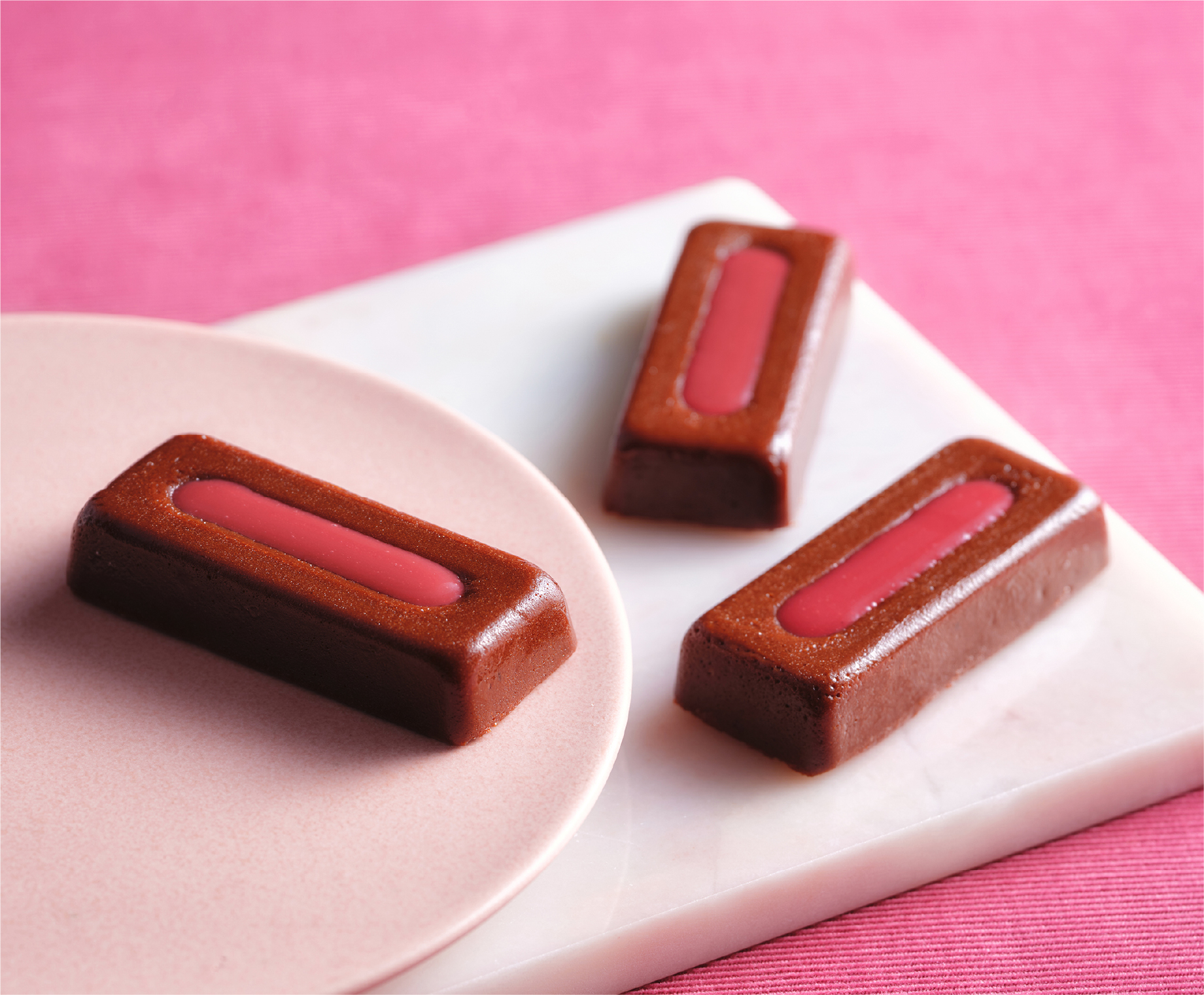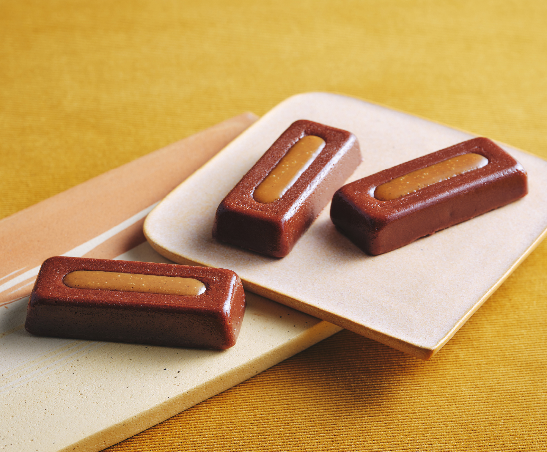衹園のショコラトリー「加加阿365」の人気商品「京ippon」が、手のひらに収まる可憐な一口サイズに。熟したベリーのような力強い香りと酸味が特徴のタンザニアカカオを使った、なめらか食感のテリーヌ。<ラズベリー>仕上げにのせたソースのほのかな甘みと酸味でカカオの豊かな香りと深みを一層引き立て、お口の中に果実味が溢れる余韻を残します。<キャラメル>仕上げにのせたソースには焦がしバターを加え、バターのコクと香ばしい風味がよりお口の中で広がります。カカオの深みと品のあるキャラメルの苦味が絶妙に調和した、この時期だけの特別なスイーツをお楽しみください。