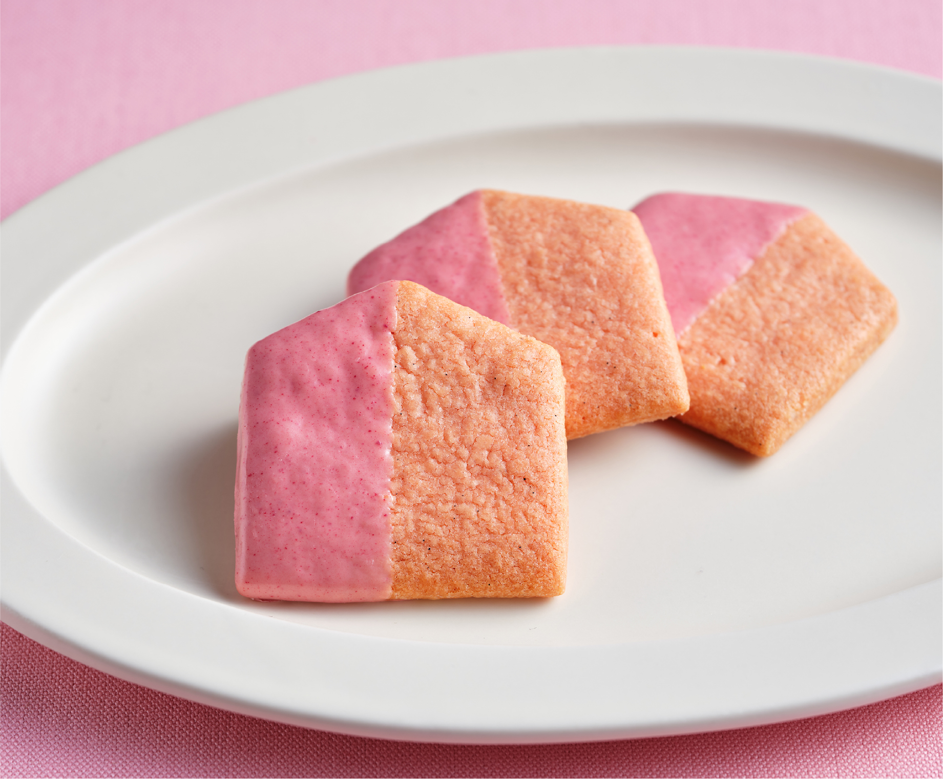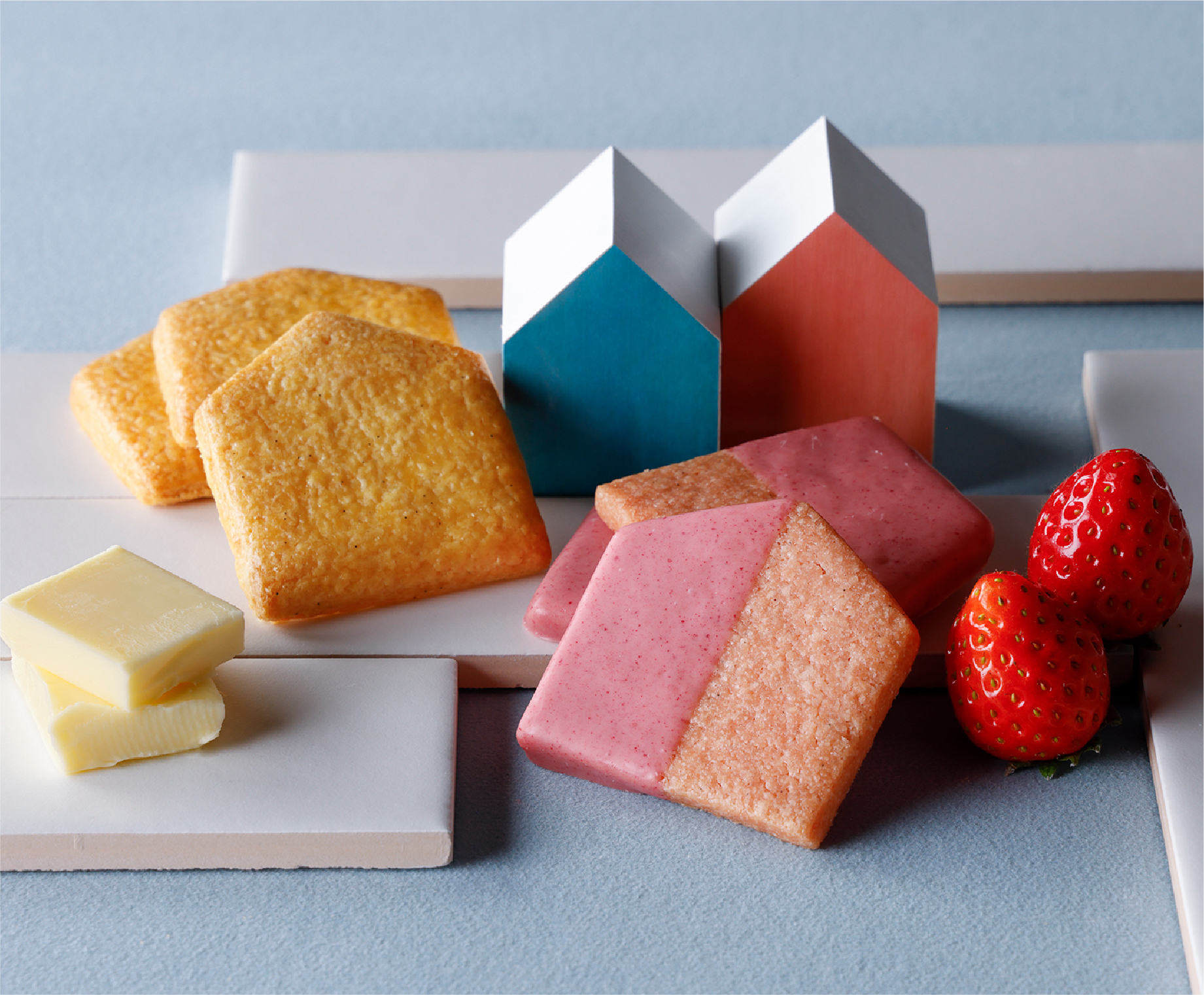 甘酸っぱい苺の香りと、なめらかなチョコレートのハーモニーが楽しめる苺味が期間限定で登場。ほろほろと口の中でほどけるような食感はそのままに、苺の香りを引き立てるよう、チョコレートを丁寧にかさねました。2種類のクッキーの詰め合わせです。