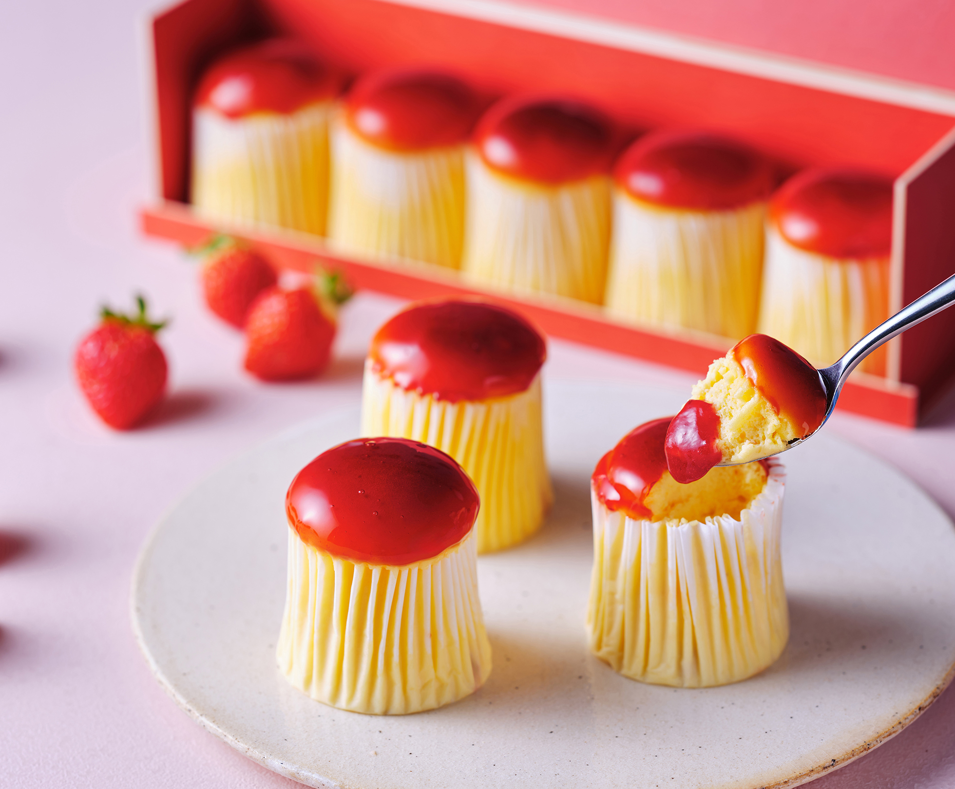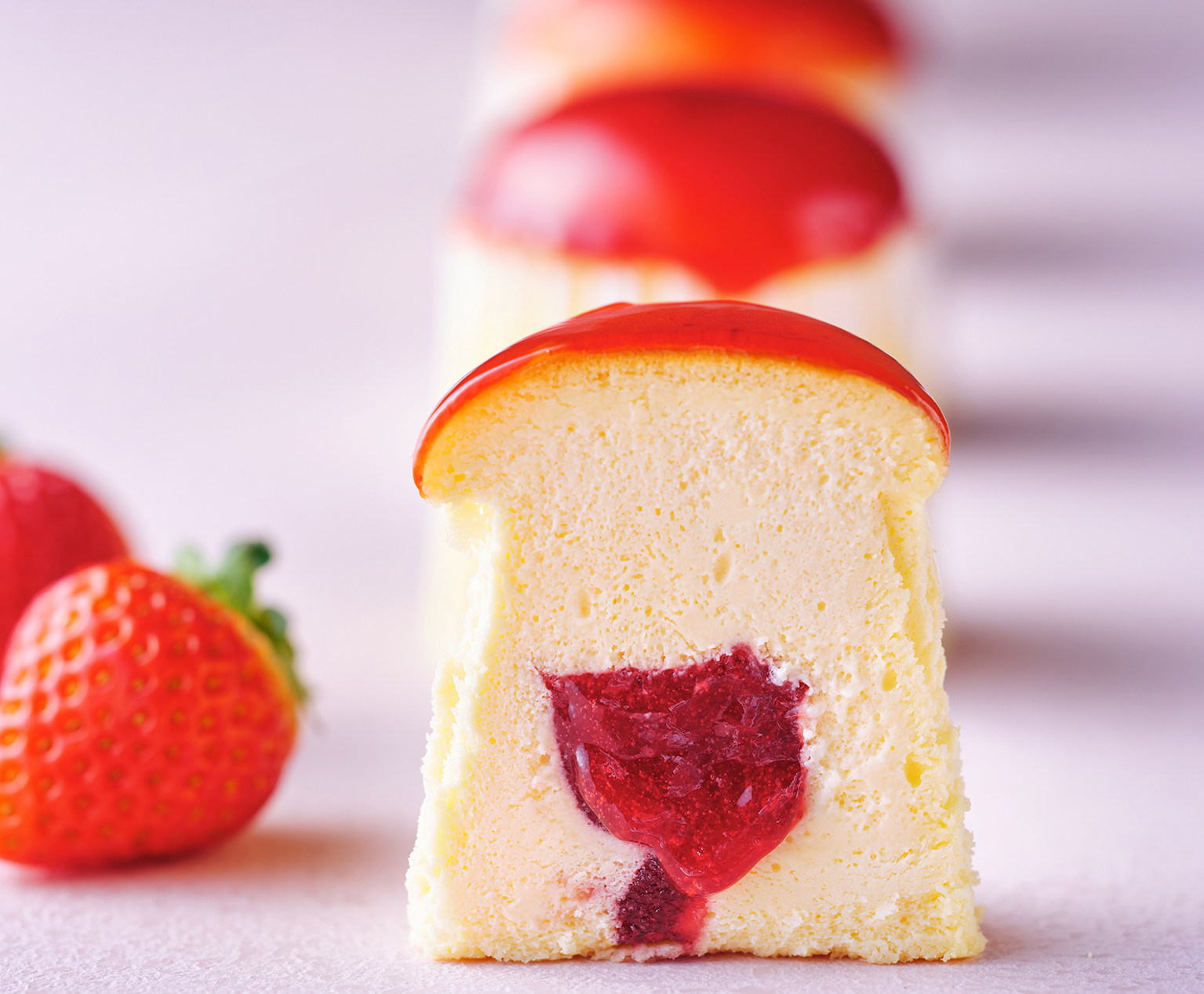 クリームチーズを練り込んだスフレ生地の中に、苺ジュレをしのばせて。