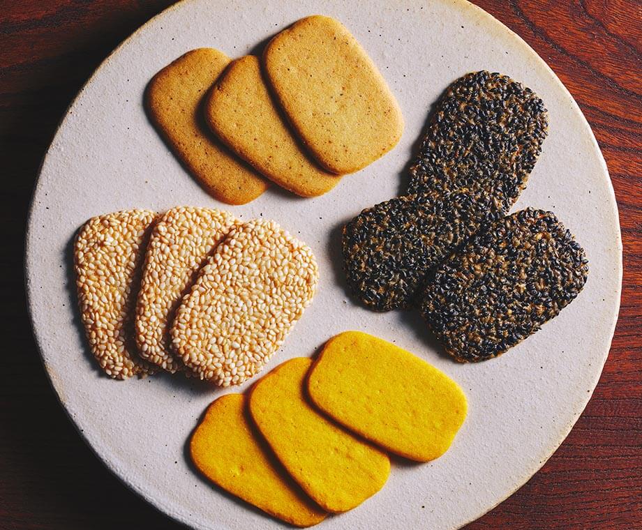 薄く仕上げた、繊細でパリパリとした食感が楽しめる香り高い「薄玻璃チュイル」を、定番の白ごま・黒ごま・うま味と季節限定のかぼちゃの4種詰め合わせにしました。京都の職人技で直火焙煎した白ごまと黒ごまは、それぞれ甘みと香ばしさ、深いコクと芳醇な余韻が魅力。利尻昆布と有機乾燥椎茸、七種の野菜を合わせた「うま味」は、やさしく広がる奥深い味わいが楽しめます。季節限定のかぼちゃは、えびすかぼちゃのペーストとパンプキンパウダーを重ね、かぼちゃ本来のやさしい甘みと風味が広がる、季節限定の味わいです。繊細で軽やかな食感とともに、素材の個性をお楽しみください。