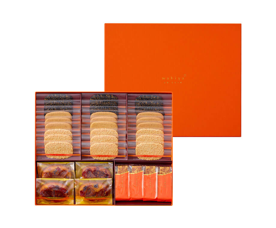 | 内 容 | 薄玻璃チュイル 白ごま×9、黒ごま×9、うま味×9、琥珀ヌガーバー×4、贅沢フルーツケーク×4 |