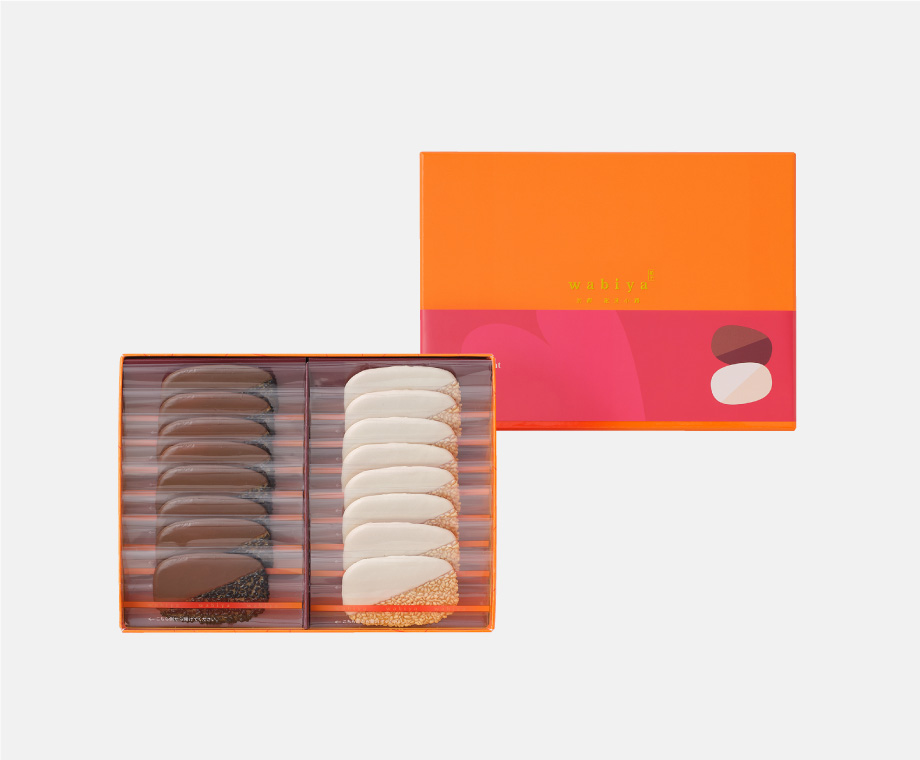 | 内 容 | 薄玻璃チュイル白ごまホワイトチョコレート×8、黒ごまミルクチョコレート×8 |