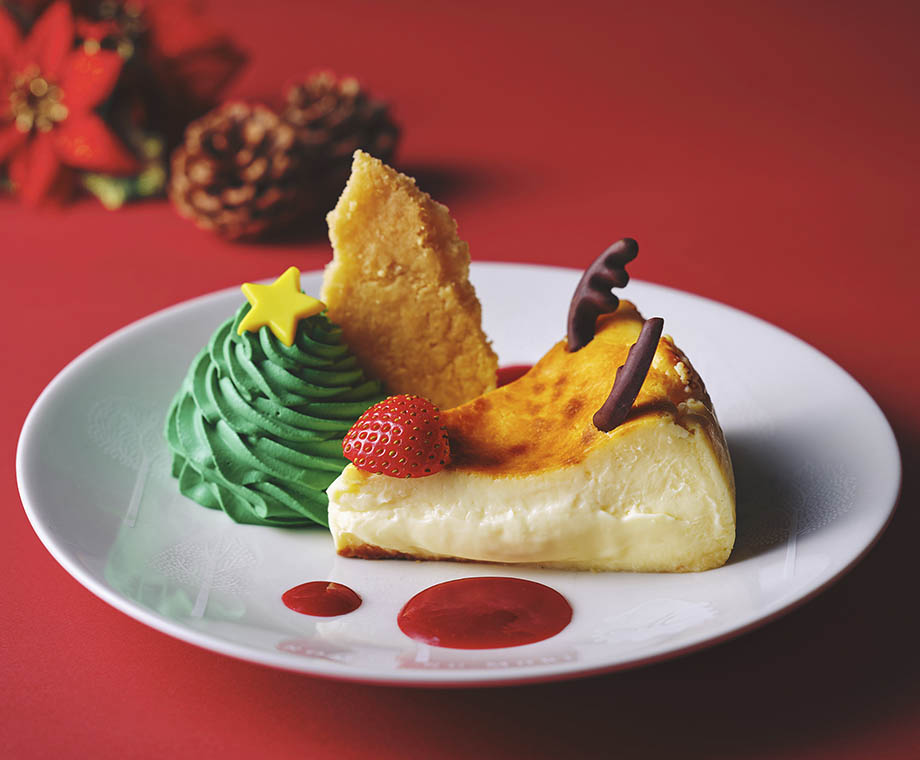 ロマンの森の定番デザートがクリスマススタイルに変身!ケーキをトナカイに見立てたトッピングがクリスマス気分を盛り上げてくれます。とろっと濃厚なチーズの風味と、ツリーの形がかわいいピスタチオクリームの相性抜群。
