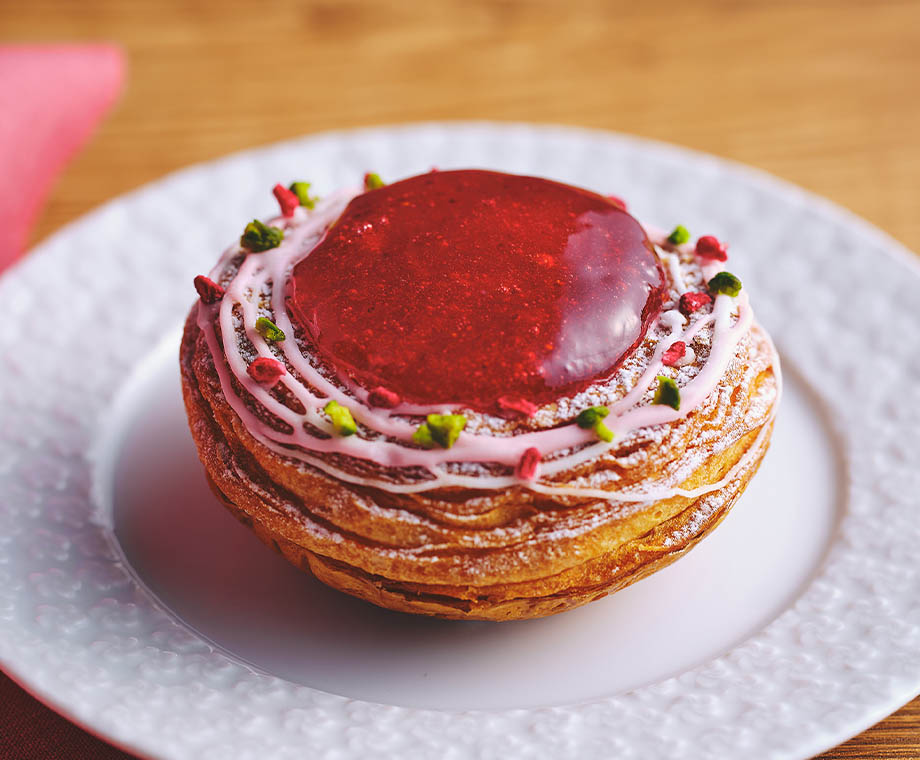 HOME > 店舗限定 > 上桂限定 > パン > ジャムクロワッサン・苺 ジャムクロワッサン・苺 香ばしく焼き上げたまんまる型のクロワッサンに、甘酸っぱい苺ジャムをたっぷりと乗せて。見た目にも華やかで可愛らしい、ティータイムを彩るひと品です。 上桂店限定 オンラインでのお取り扱いはしておりません 販売店舗 上桂店 特定原材料等28品目 小麦・卵・乳成分・アーモンド 備 考 ※店内でお召し上がりいただく場合は、消費税が10%になります。