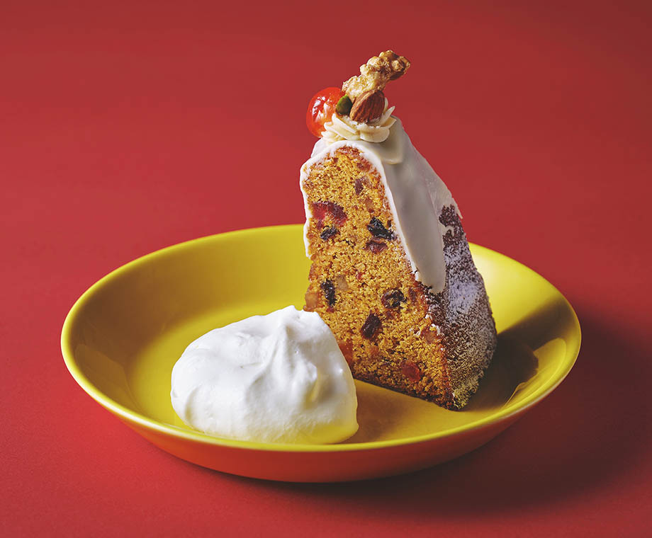 香ばしく焼き上げたキャラメル生地に、シナモンの風味を効かせたコーティングを施しました。砂糖漬けのチェリーを飾れば、生地に練り込んだドライフルーツと重なり、ひと口ごとに甘酸っぱさが弾ける、冬のテーブルに映える華やかなクグロフです。