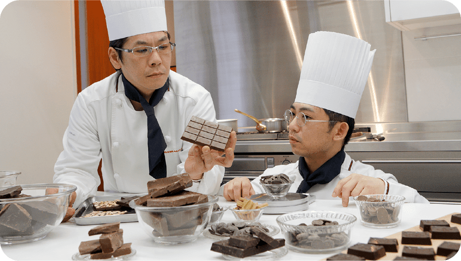 世界にはとても多様な銘柄のカカオがあり、それぞれ明確な個性があります。時に単独で、時にブレンドして、思い描く味のイメージにあわせて、日本人の美味しさの原風景を見つめながら、最高のコンディションに高めていきます。